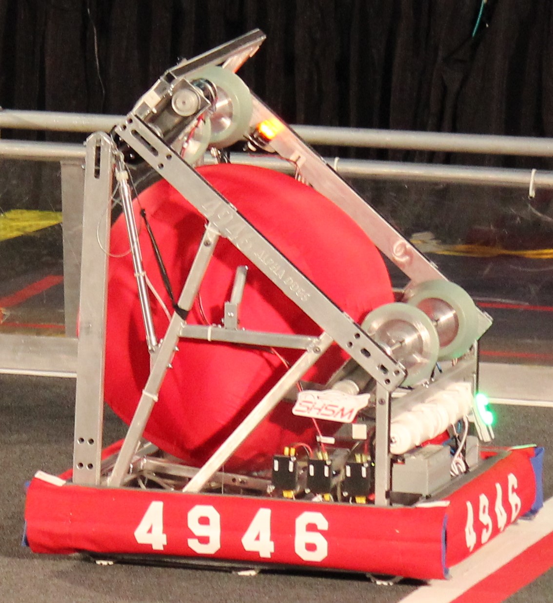 The team’s robot, named Alph was built on a kit bot drivetrain, with an extending intake and 4 shooter wheels to power the ball over the truss and into the high goal.