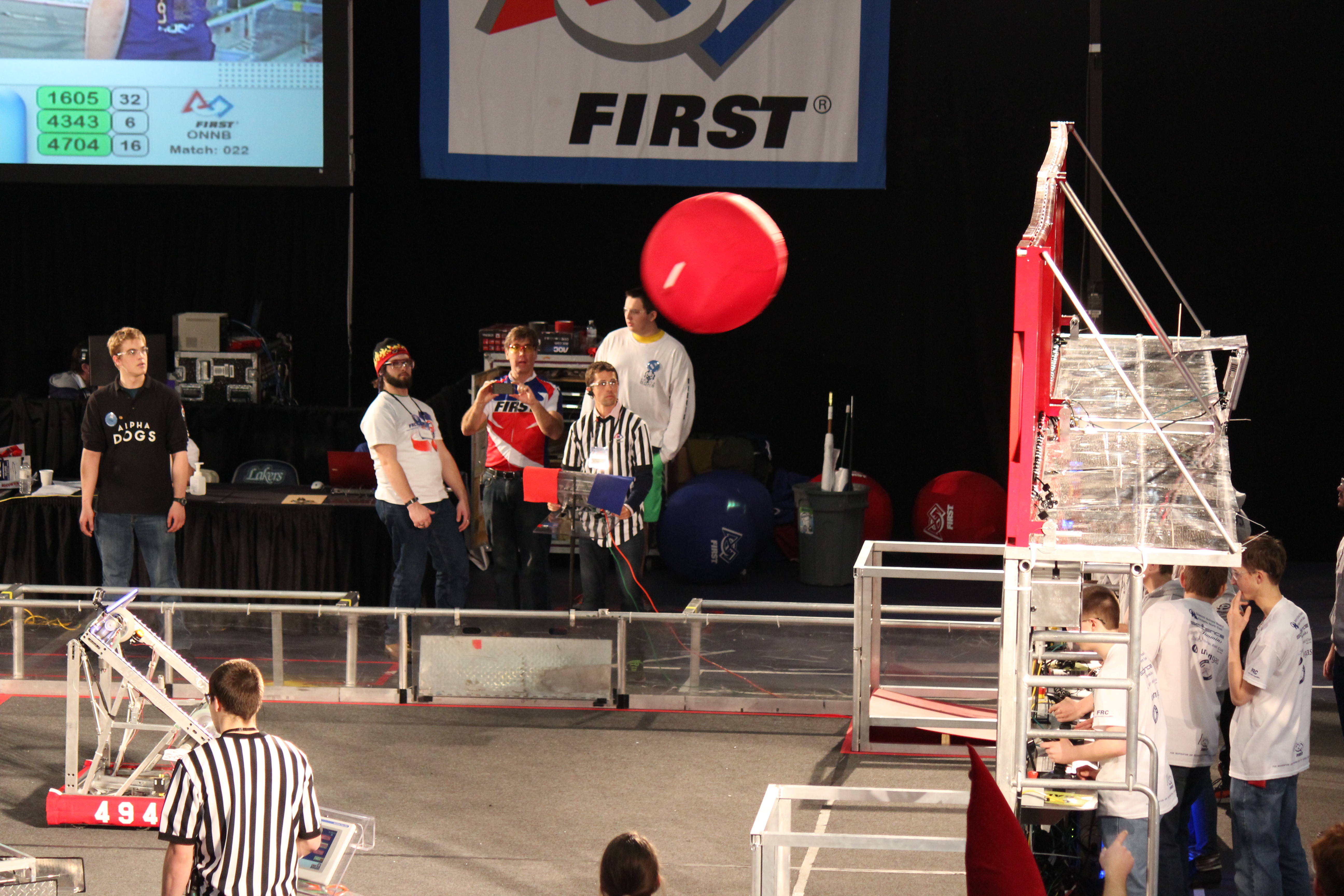 After the team’s success at GTR West , the team competed at the North Bay Regional competition. Through 11 qualification matches, the team went 7-4, seeding 6th again. The team captained alliance 4, and was eliminated in the quarterfinals. The team won the Highest Rookie Seed Award, the Creativity Award, and the Rookie All-Star Award, qualifying the team for the World Championship in St. Louis.