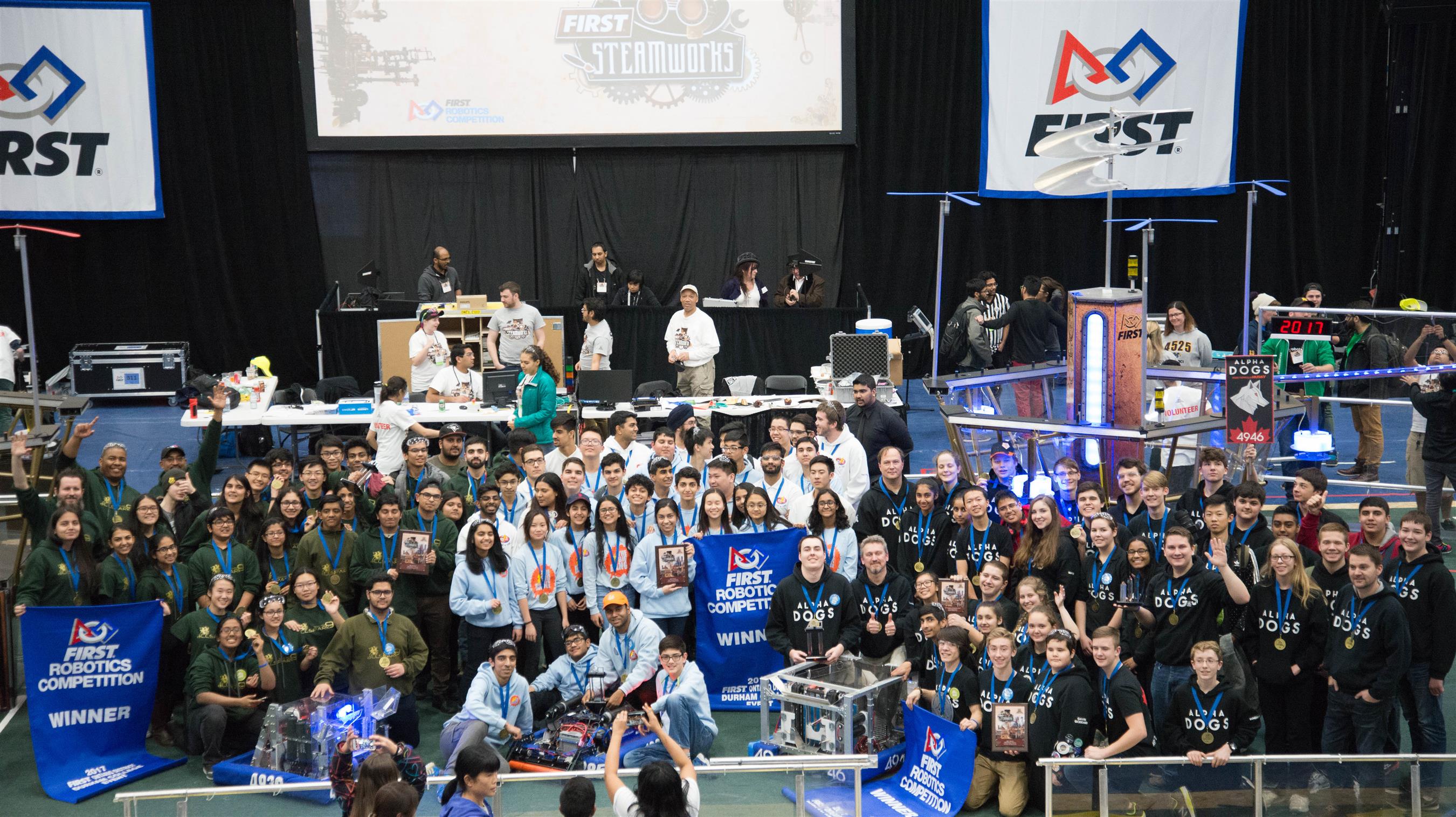 The team’s first event of 2017 season was the Durham College competition. Through 12 qualifying matches, the team went 7-5, seeding 15th. The team was the 2nd pick of alliance 2, and won the event. The team also won the Excellence in Engineering Award.