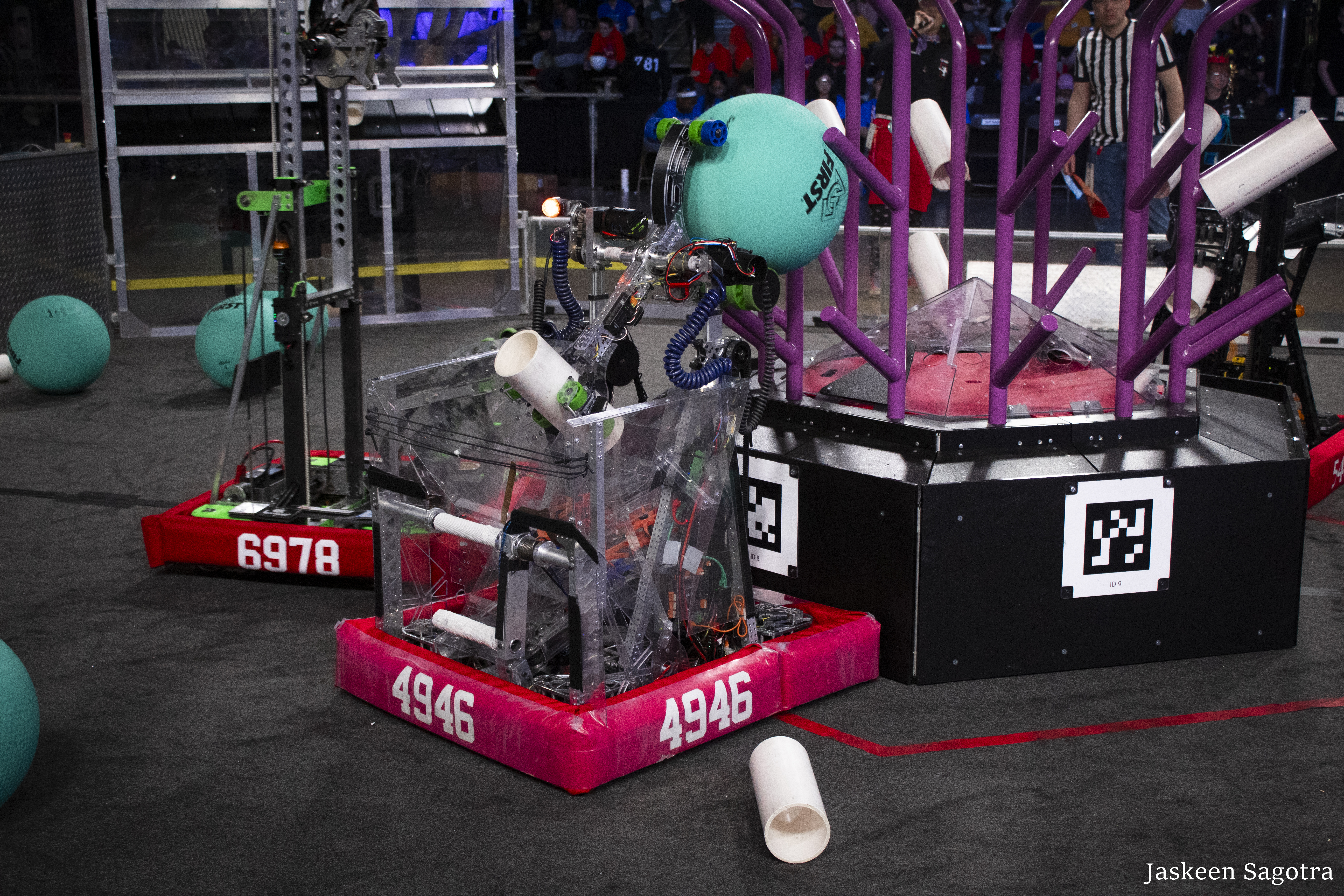 From the team’s performance at qualifying events, the team was invited to the provincial championship, and was placed in the Technology division. Through 12 qualification matches, the team went 11-1, seeding 2nd. The team captained alliance 2, and went 3-3 in the playoffs, and were the divisional finalists. The team also won the Creativity Award. With the season’s performance , the team finished 6th in Ontario, and qualified for the world championship.